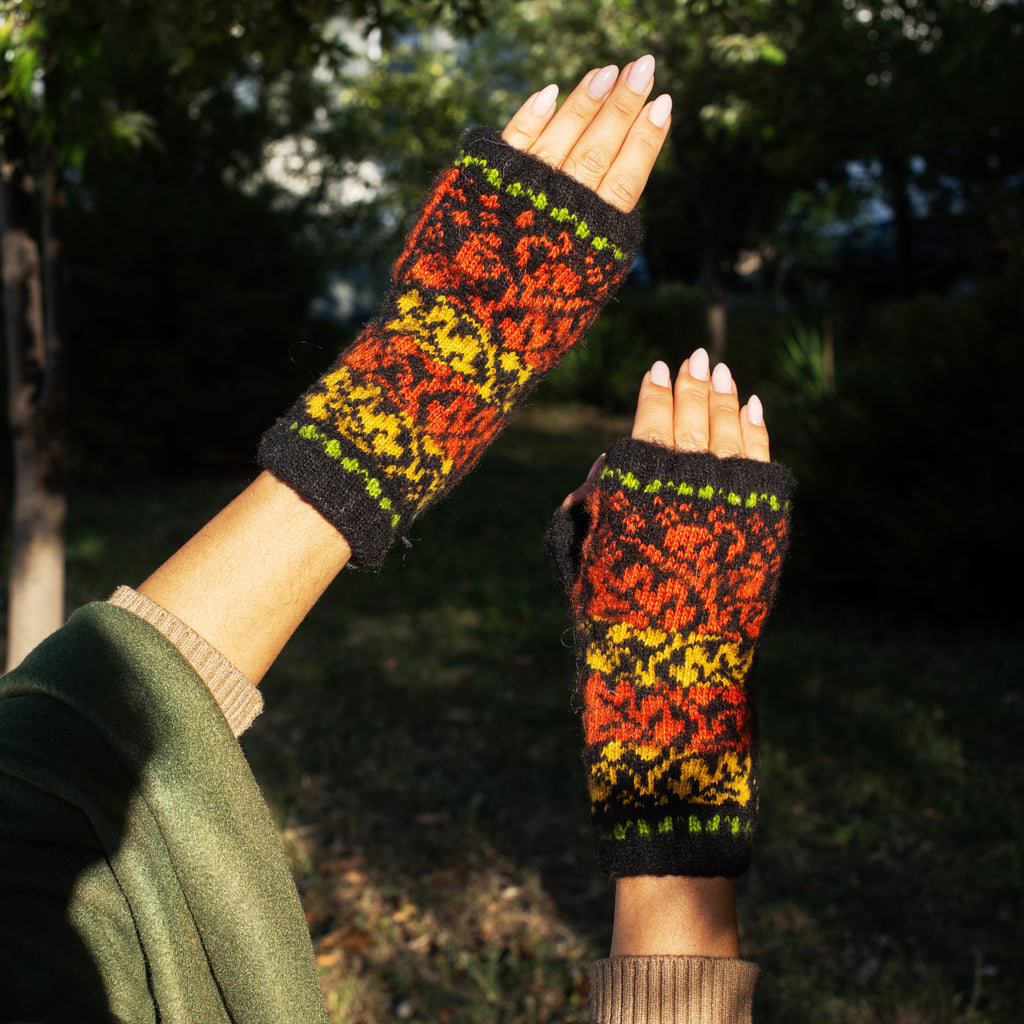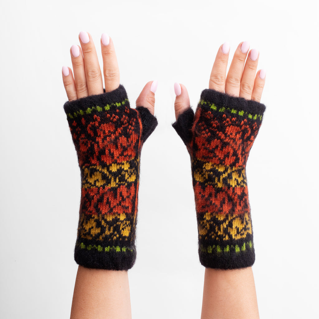 Striking pattern. Cozy intention. During the holiday season when our hands are busiest, this handwarmer style keeps us covered without slowing us down. Noir Rose brings a bold, timeless floral pattern to those everyday winter rituals—equal parts refined and functional.