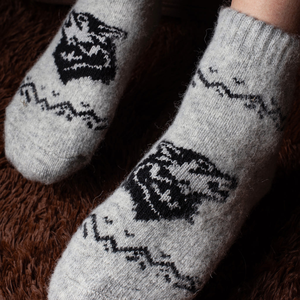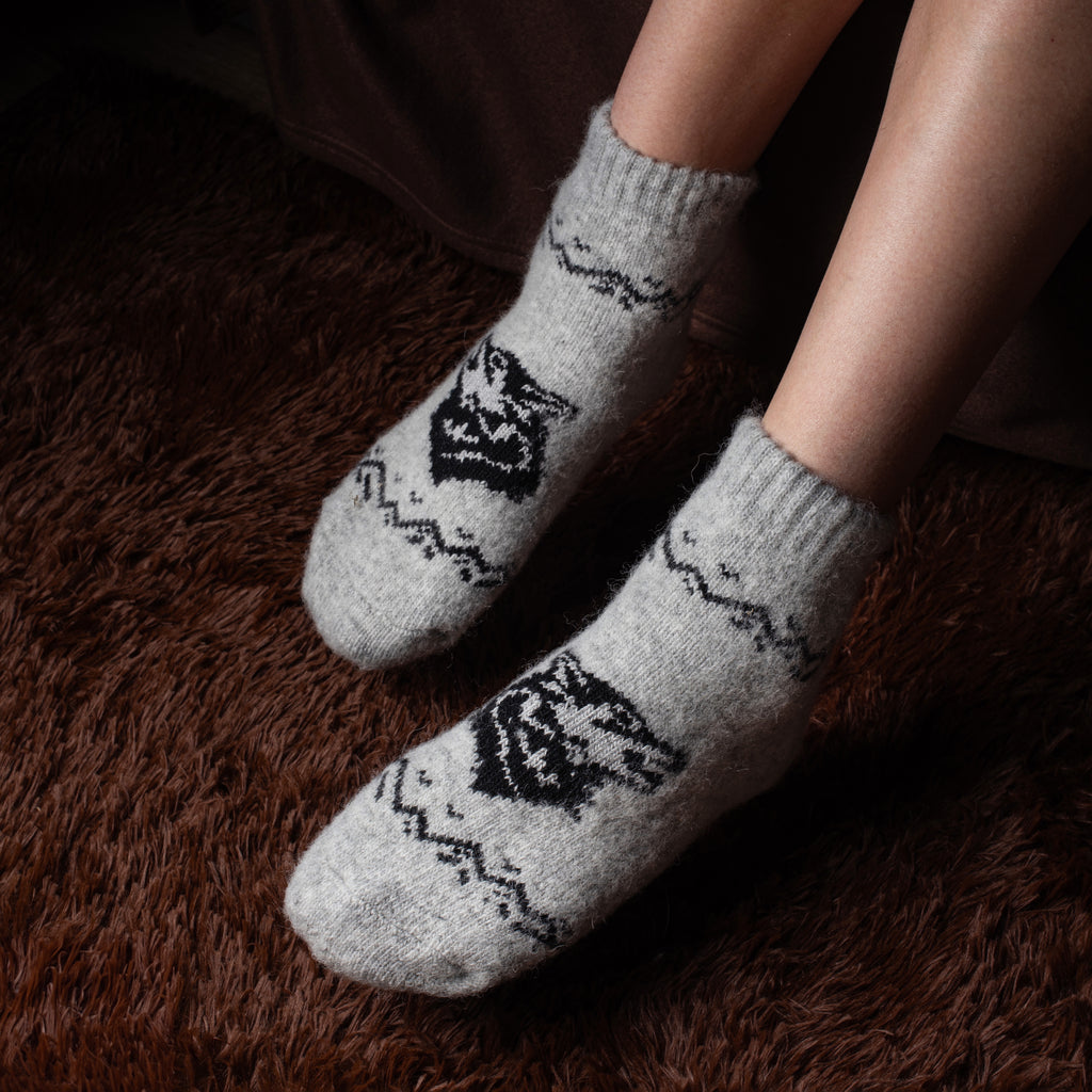 Crafted from breathable Merino wool, these low-cut socks offer natural warmth and softness—perfect for slipping into slippers, cozying up at home, or gifting to the wild-hearted.