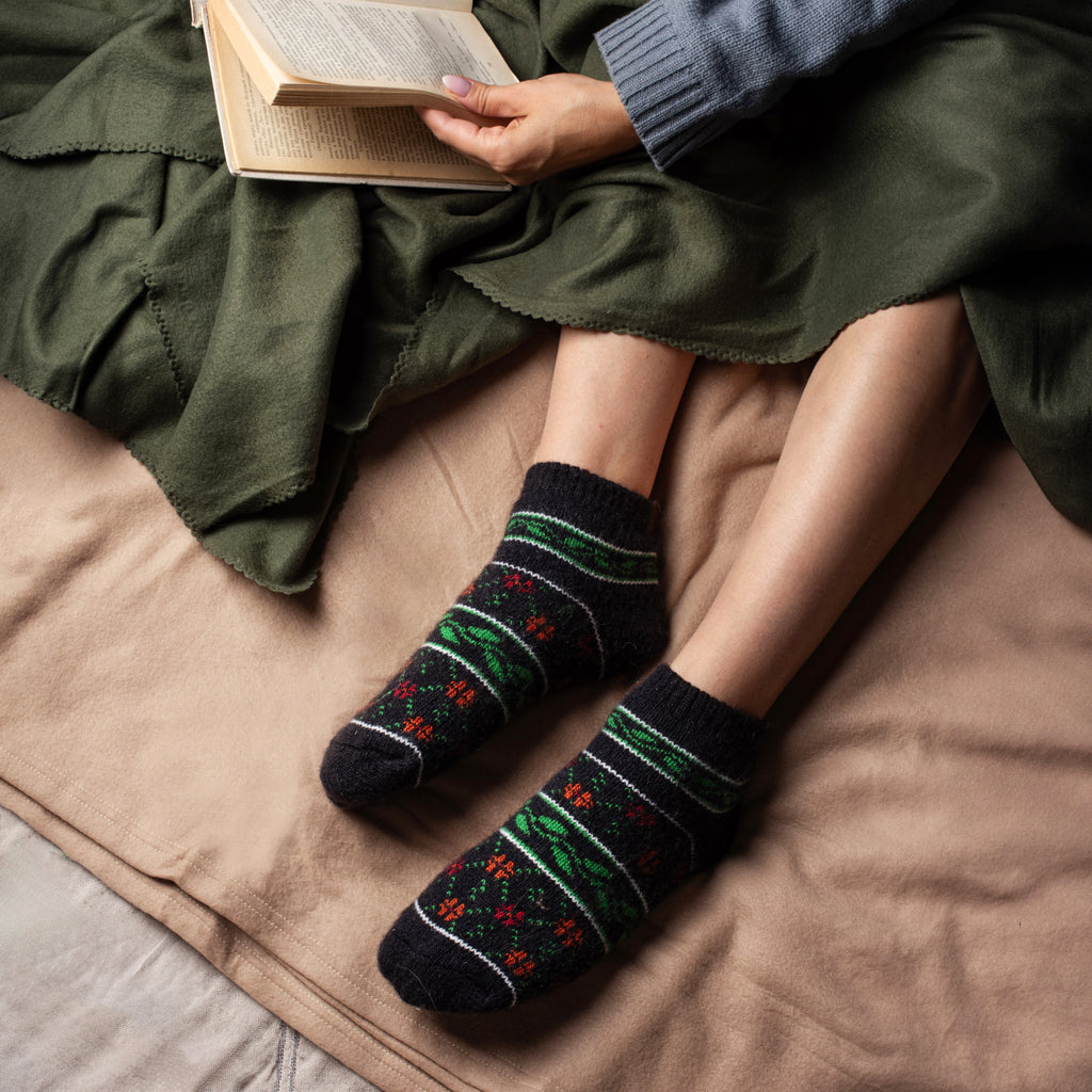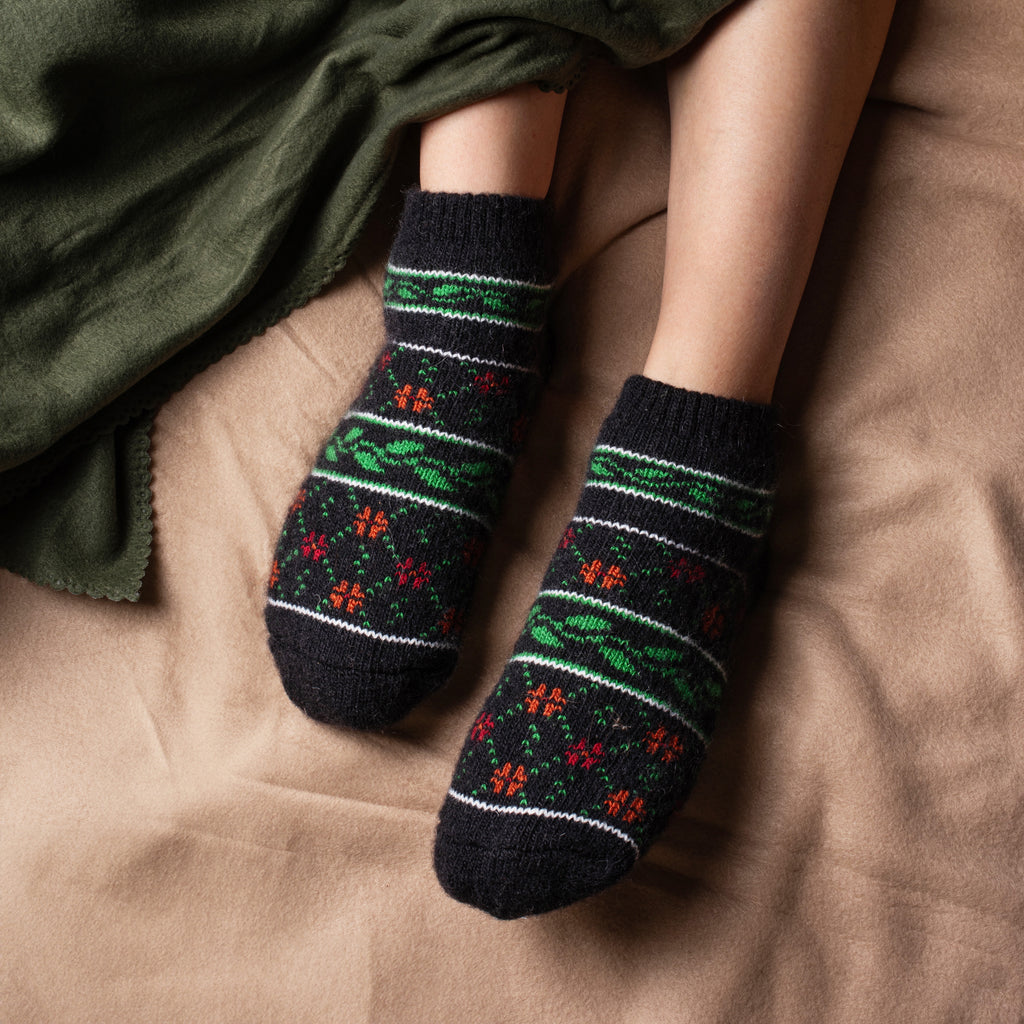 Crafted from breathable Merino wool, these low-cut socks offer plush comfort and lightweight warmth—perfect for padding around the house, slipping into slippers, or gifting a little garden-inspired cheer.