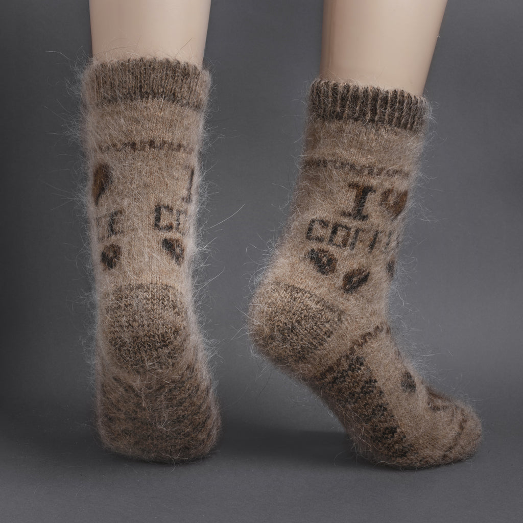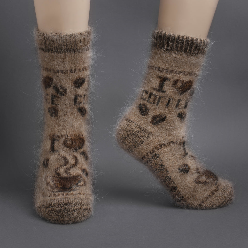 Women's I Love Coffee Thick Goat Wool Crew Socks