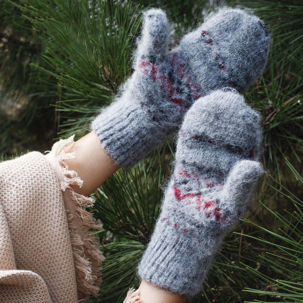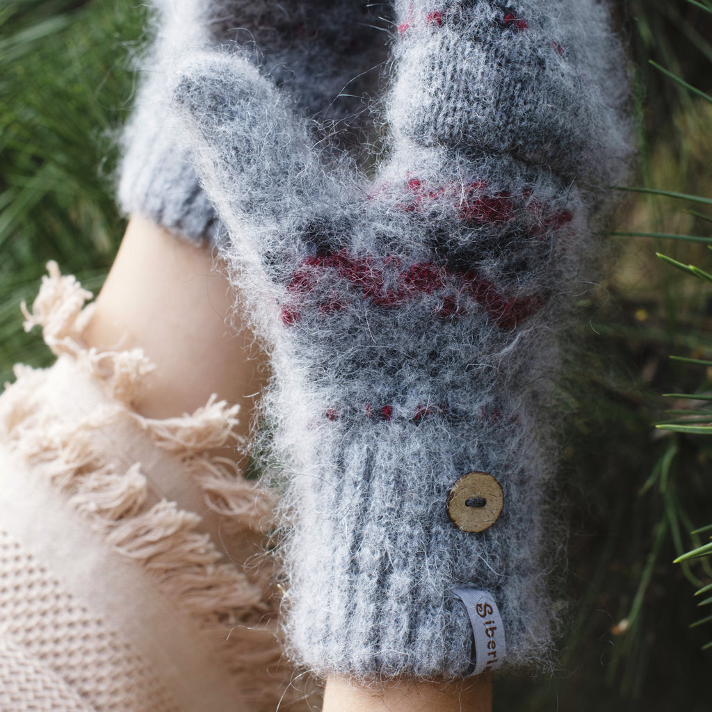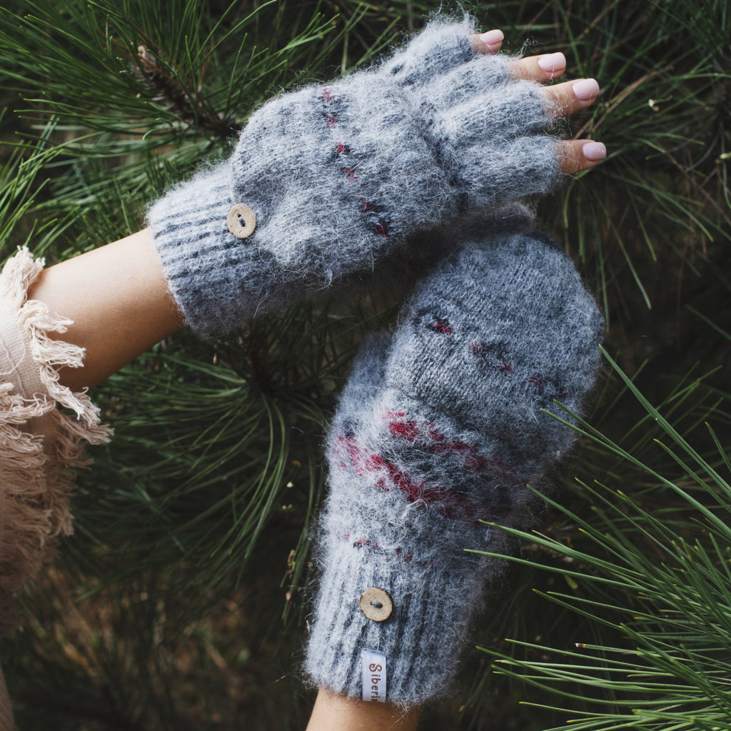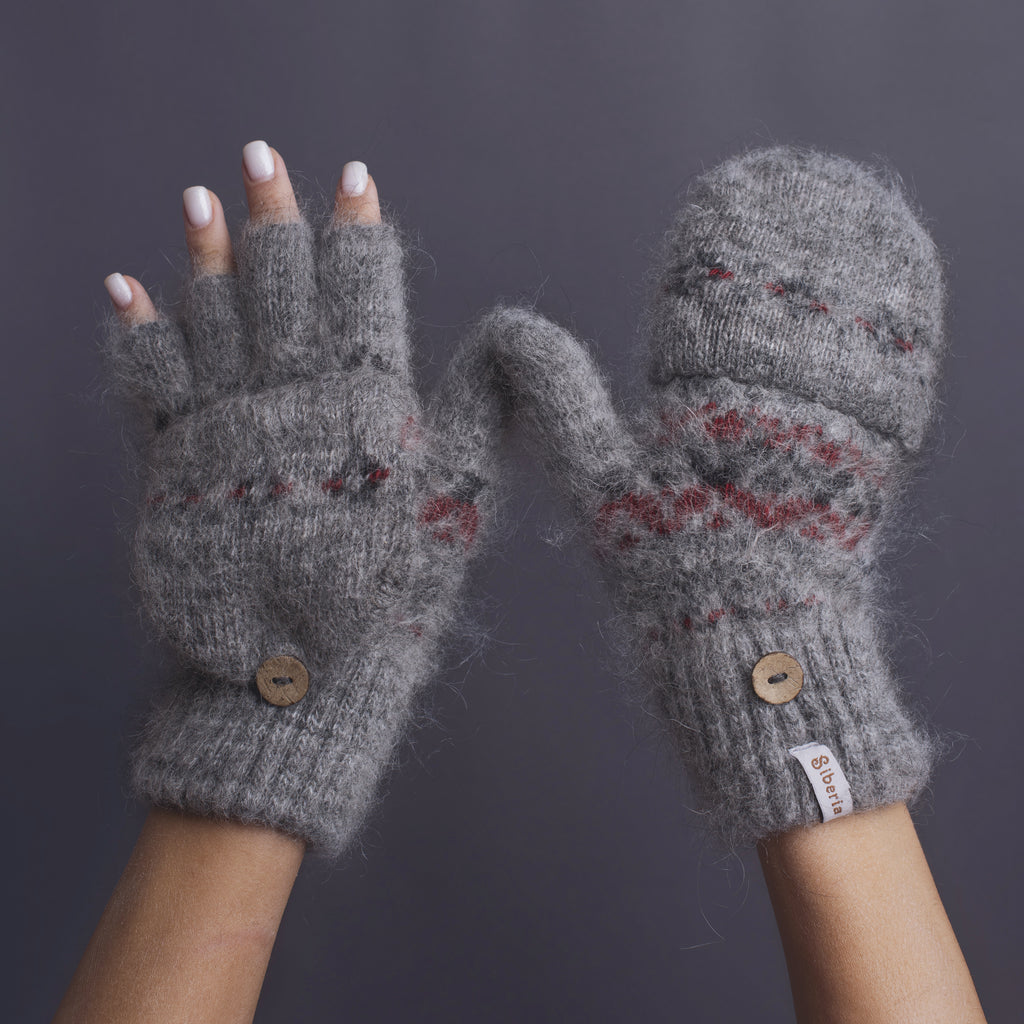 Warmth with a bold edge. These flip-top mittens feature a striking red and gray geometric design that adds flair and function to any cold-weather outfit. Easily convert them into fingerless gloves for on-the-go use, all while enjoying the breathable comfort of natural goat wool. Hand-loomed in small batches by skilled women artisans.