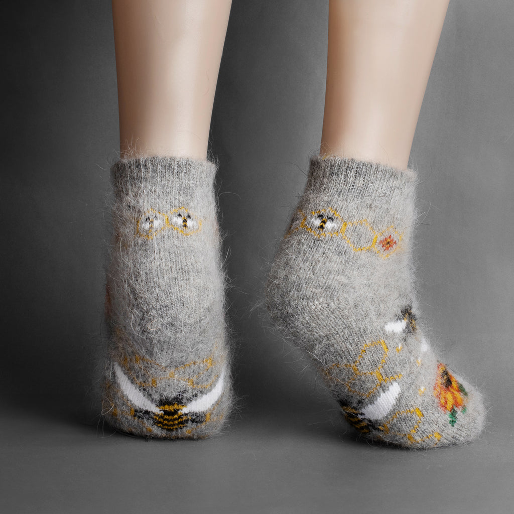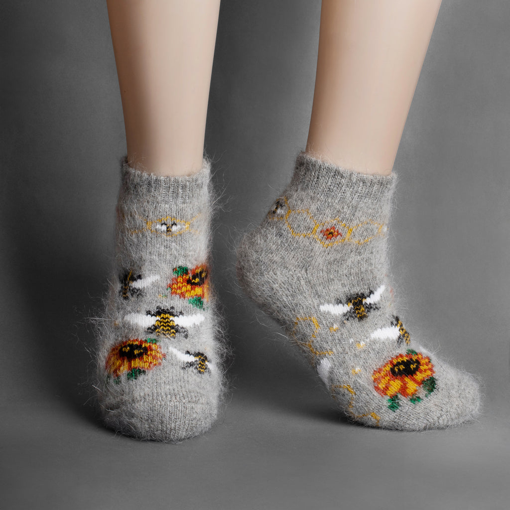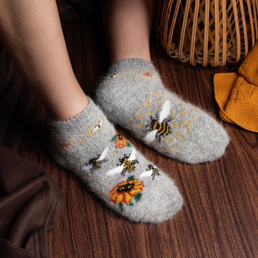 Unisex Bees & Flowers Thick Goat Wool Low-Cut Socks