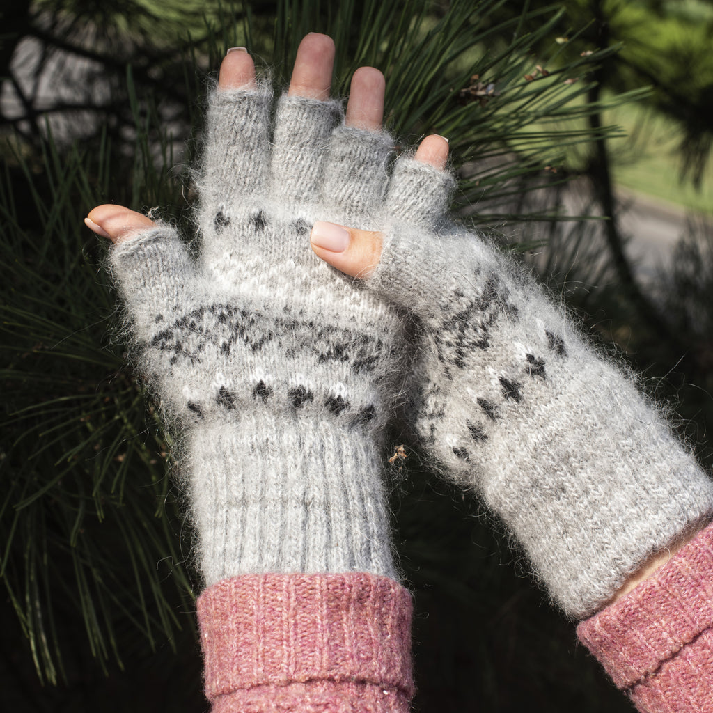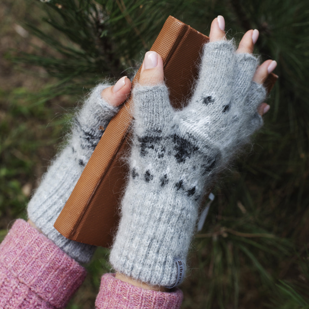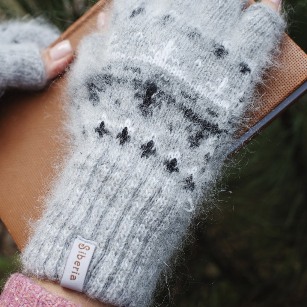 Nature at your fingertips. These fingerless gloves mirror a quiet forest scene reflected in water, turning everyday warmth into a moment of stillness. Spun from goat wool, they keep your hands cozy while giving your fingers freedom for texting or typing. Each pair is handcrafted by women in Siberia, preserving beauty and tradition one pair at a time.